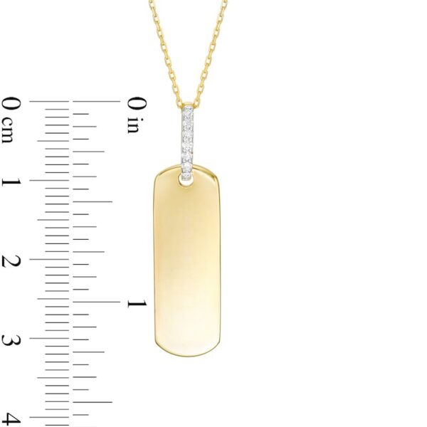 Wear your values with pride with this statement-making diamond pendant. Crafted in warm 10K gold, this petite tag features the word inscribed vertically along the center. Diamonds line the bail for a hint of sparkle. Captivating with 1/20 ct. t.w. of diamonds and a bright polished shine, this pendant suspends along a 16.0-inch cable chain with 2.0-inch extender that secures with a spring-ring clasp. This exclusive fine jewelry collection inspires you to wear your strength, confidence and power.