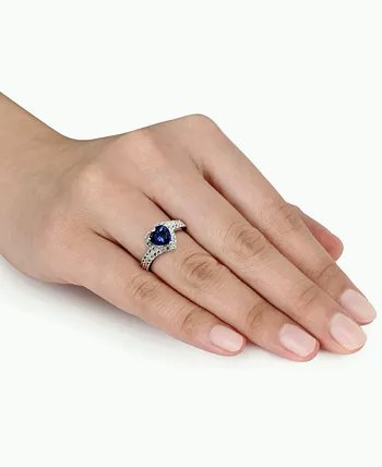 Absolute enchantment. A heart-shaped blue sapphire is caught up in a swirl white sapphires in this sparkling silver ring.