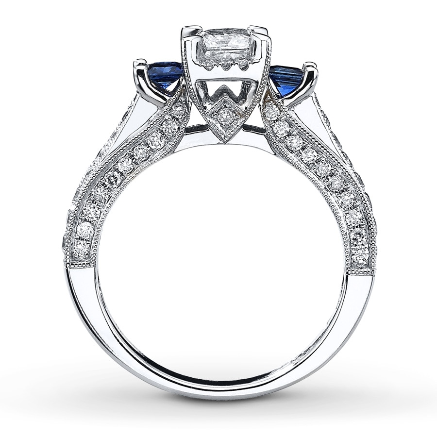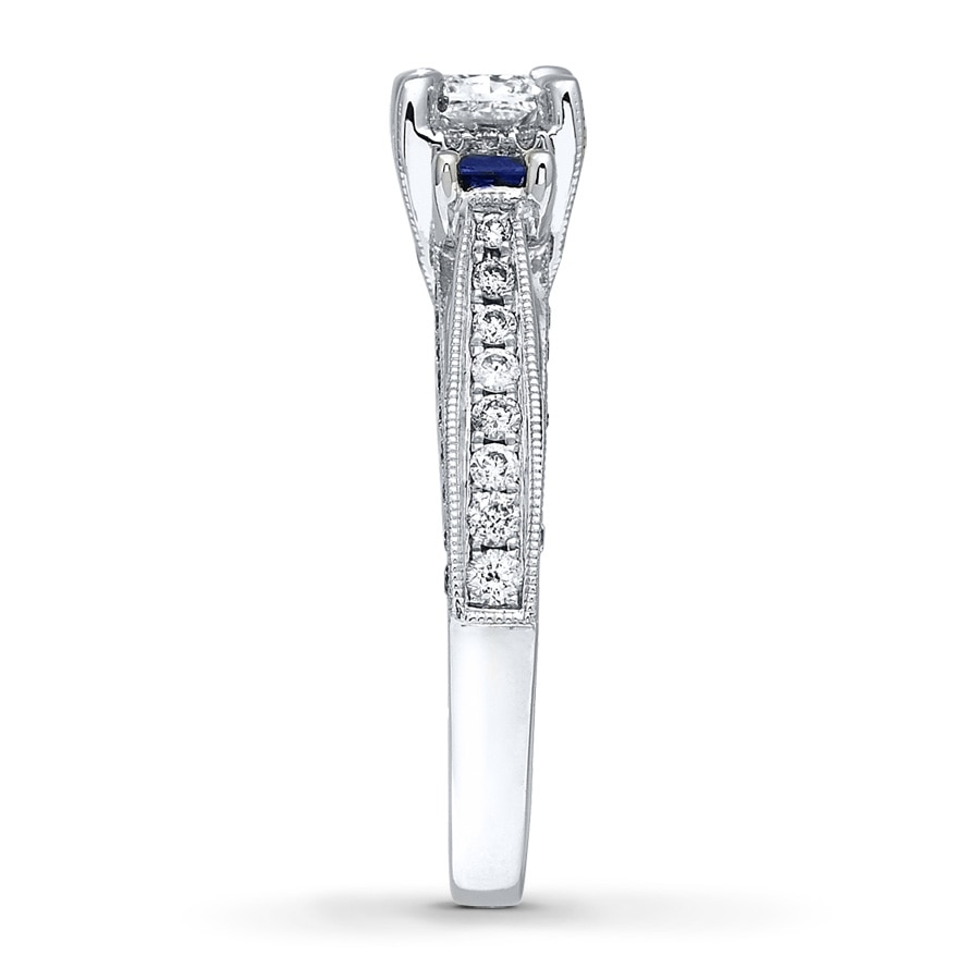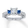 Diamond/Sapphire Engagement Ring 1 cttw Princess/Round 14K Gold